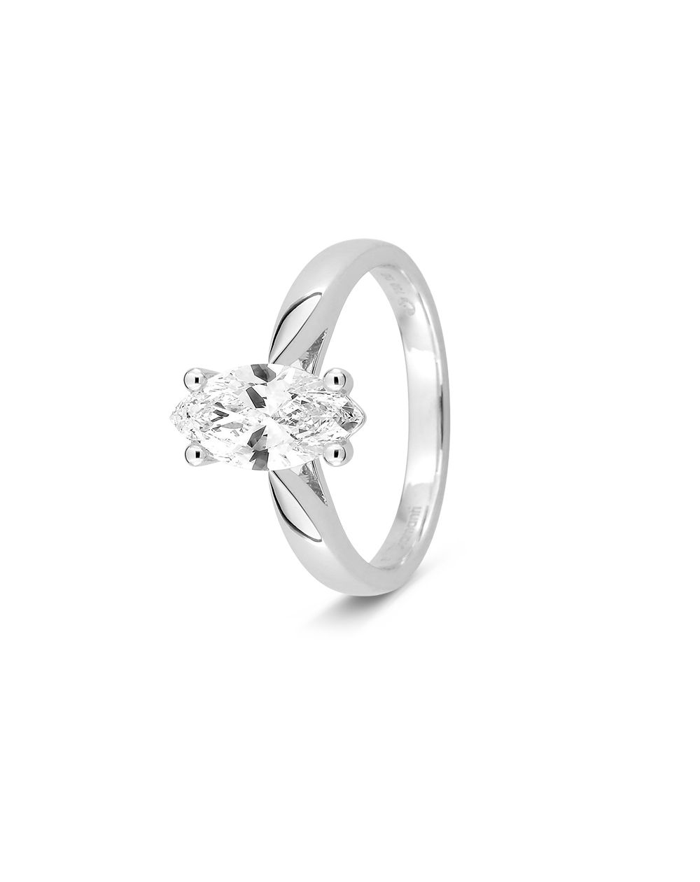 Solitaire ring met een marquise geslepen, in het laboratorium gekweekte diamant van 1,50 karaat – 18k F-VS gecertificeerd witgou