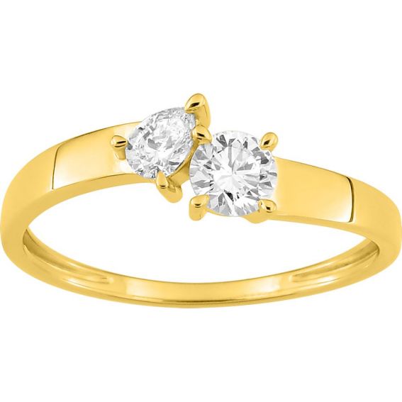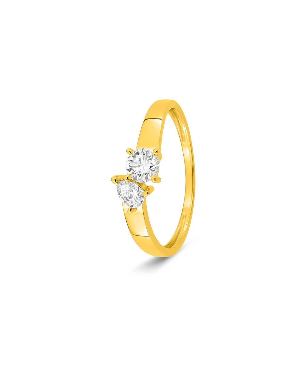 Ring met twee in het laboratorium gekweekte diamanten, 0,40 ct – 9 karaat (375‰) geelgoud F-VS
