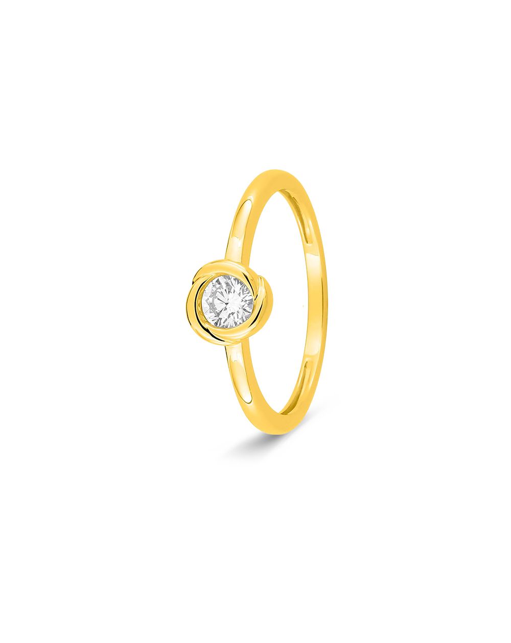 Elegant en tijdloos, deze solitaire ring van 9 karaat (375‰) geelgoud is bezet met een ronde, in het laboratorium gekweekte diamant van 0,25 karaat . Het strakke ontwerp laat de centrale steen perfect tot zijn recht komen en biedt een evenwichtige schittering en een subtiele aanwezigheid aan de vinger.