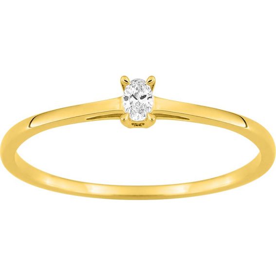 Ovale solitaire ring met in het laboratorium gekweekte diamant van 0,06 ct – 9 karaat (375‰) geelgoud F-VS