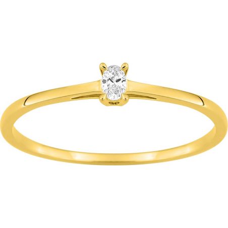 Deze ring van 375 goud met een ovale, in het laboratorium gekweekte diamant van 0,06 karaat is ideaal als minimalistische ring , eerste diamanten sieraad , verfijnd cadeau of betaalbare stapelring.