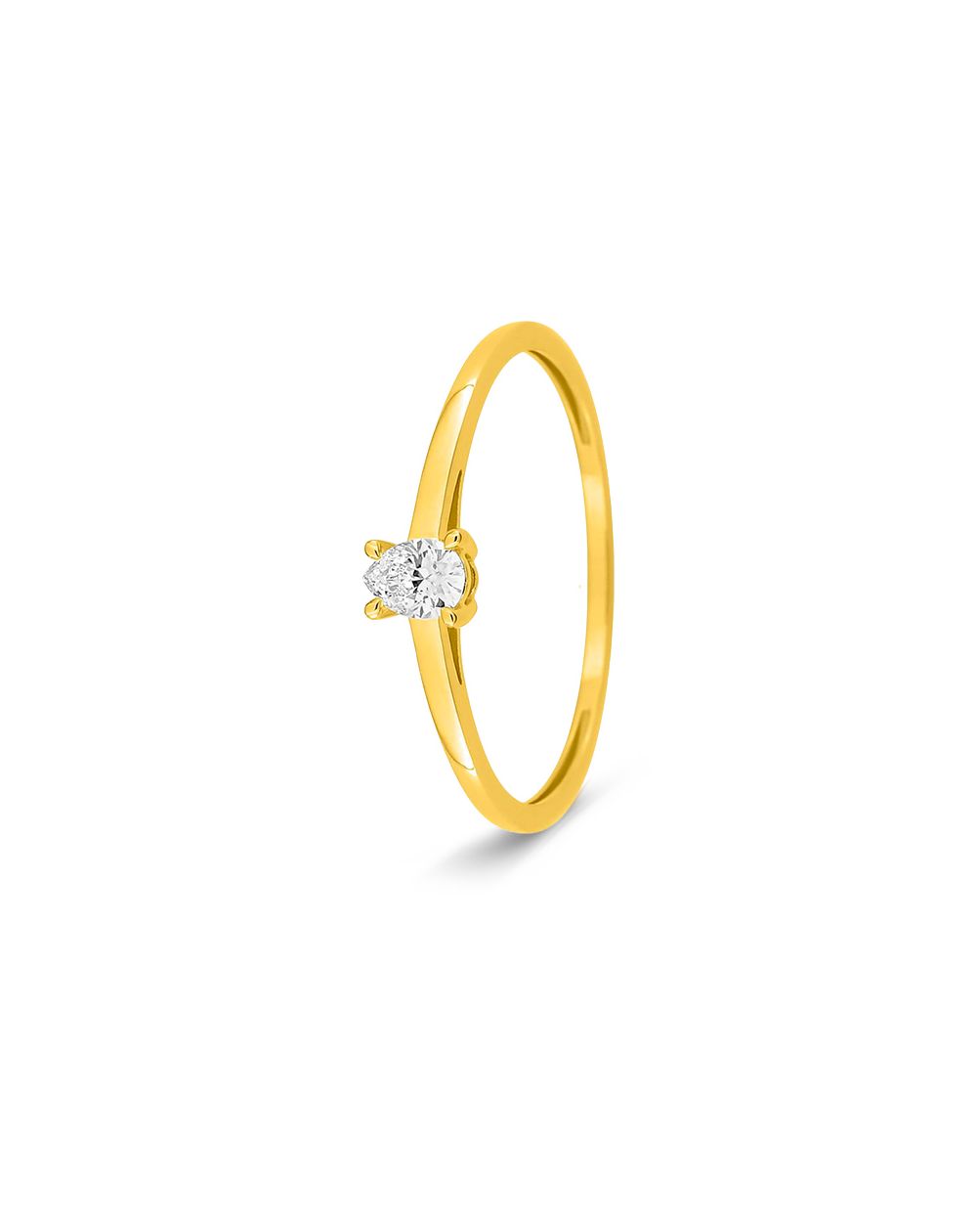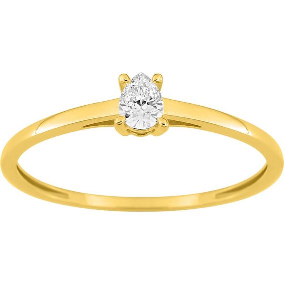 Peervormige, in het laboratorium gekweekte diamanten solitaire ring, 0,15 ct – 9 karaat (375‰) geelgoud, F-VS