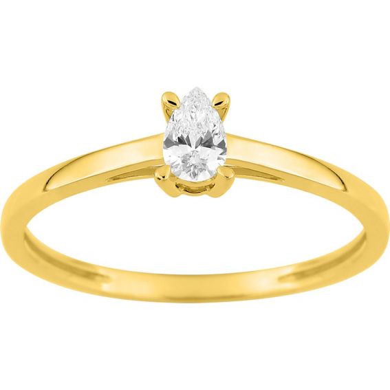 Peervormige, in het laboratorium gekweekte diamanten solitaire ring, 0,19 ct – 9 karaat (375‰) geelgoud, F-VS