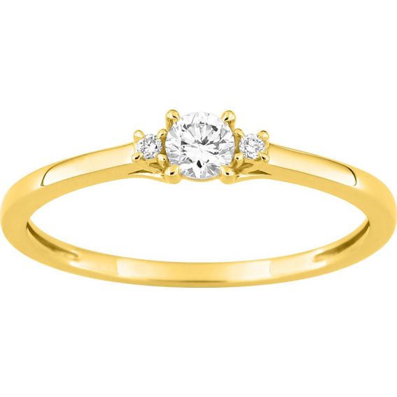 Deze delicate en subtiel sprankelende ring van 9-karaats (375‰) geelgoud is bezet met in het laboratorium gekweekte diamanten met een totaal gewicht van 0,06 karaat . De centrale ronde diamant van 0,05 karaat wordt elegant geflankeerd door kleinere stenen. Een evenwichtige compositie die een vleugje kostbaarheid toevoegt en tegelijkertijd discreet blijft.