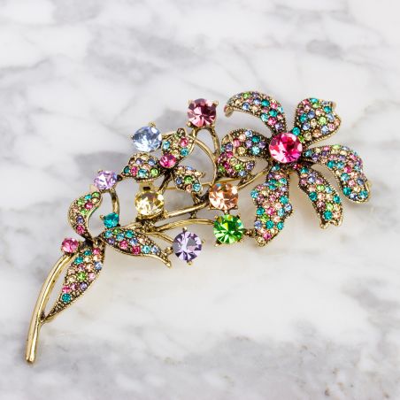 Deze broche is een broche bezet met zirkoniumoxide steen. Het meet 140 mm hoog bij 60 mm breed.