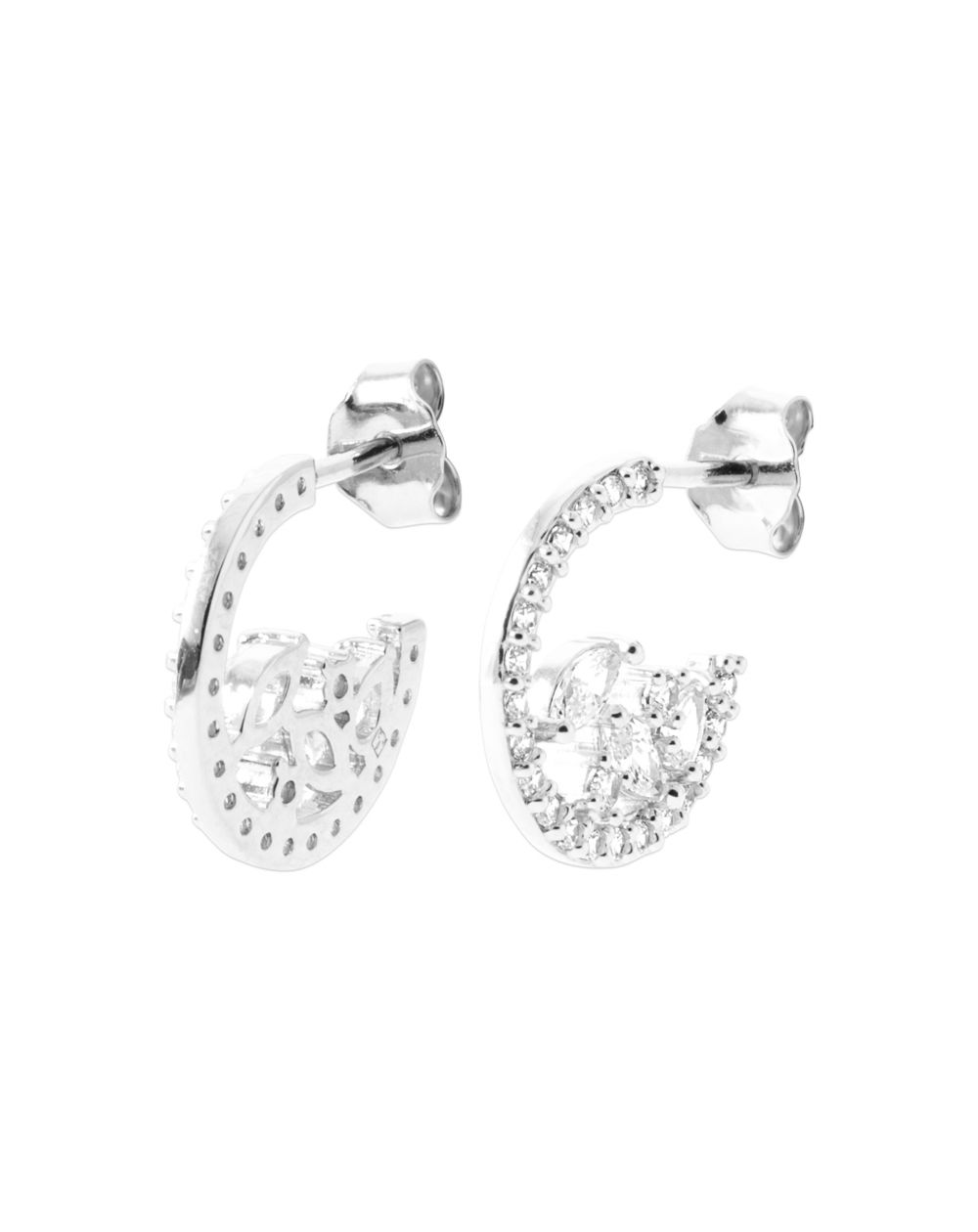 Het ontwerp van hun mini-oorringen wordt versterkt door een reeks sprankelende steentjes , waardoor een lichtgevend effect ontstaat dat vergelijkbaar is met dat van sieraden.