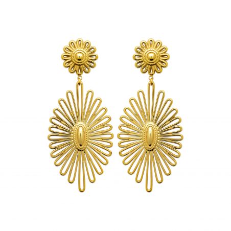Verfraai je stijl met de Radiant Sun Gold roestvrijstalen oorbellen . Geïnspireerd door de zonnestralen, hebben ze een grafisch en luchtig ontwerp, bestaande uit fijne gouden lijnen die zich uitstrekken rond een stralend middelpunt voor een oogverblindend en ultra-vrouwelijk effect.